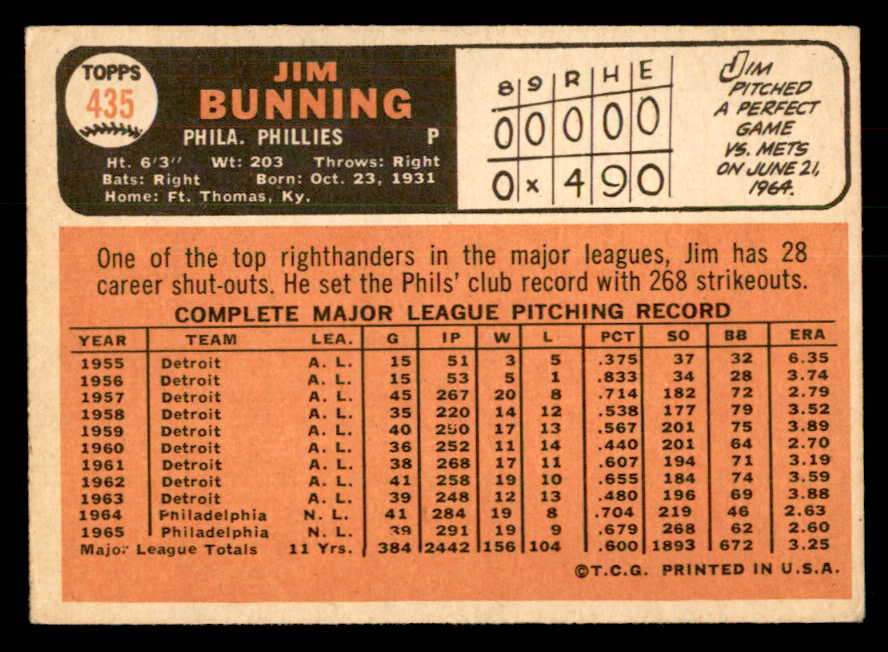 1966 Topps Baseball #435 Jim Bunning Philles VG-EX 541319
