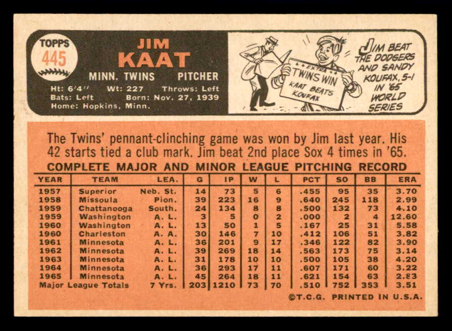 1966 Topps Baseball #445 Jim Kaat Twins NR-MT 540886
