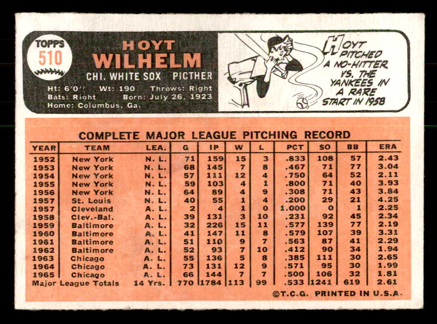 1966 Topps Baseball #510 Hoyt Wilhelm White Sox EX-MT 541326