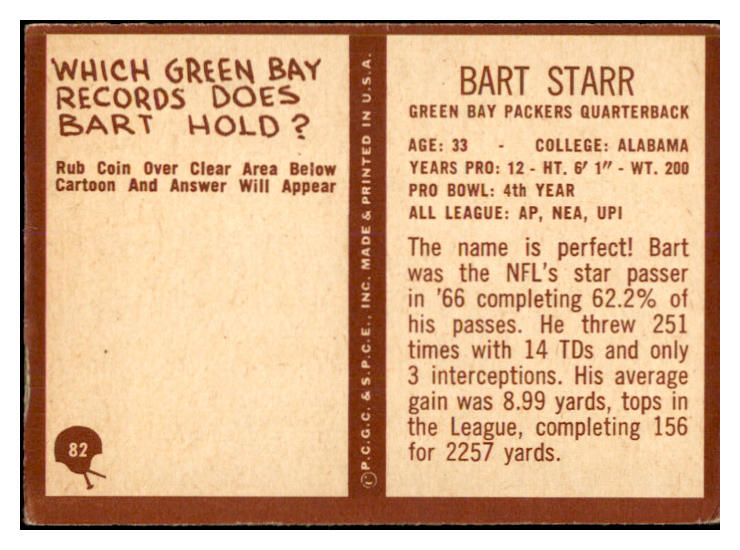 1967 Philadelphia Football #082 Bart Starr Packers Fair 537398