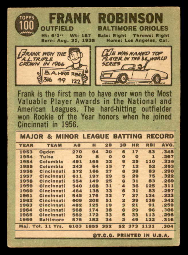 1967 Topps Baseball #100 Frank Robinson Orioles EX 546231