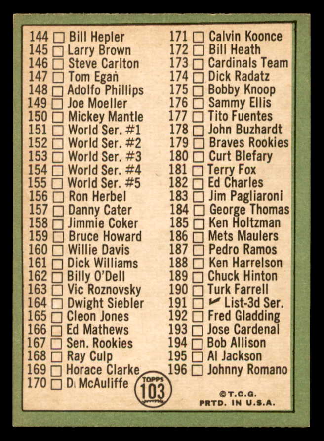 1967 Topps Baseball #103 Checklist 2 Mickey Mantle EX-MT 546224