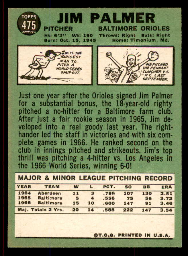 1967 Topps Baseball #475 Jim Palmer Orioles EX-MT 545803