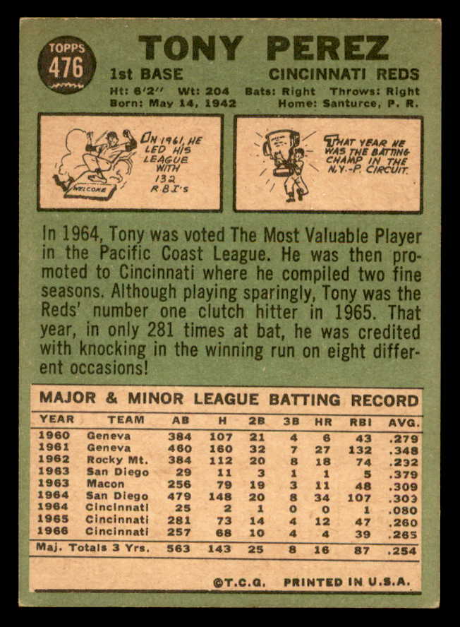 1967 Topps Baseball #476 Tony Perez Reds EX+/EX-MT 546268