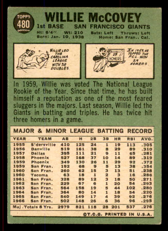 1967 Topps Baseball #480 Willie McCovey Giants EX 545806