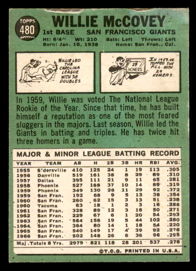 1967 Topps Baseball #480 Willie McCovey Giants VG 548198