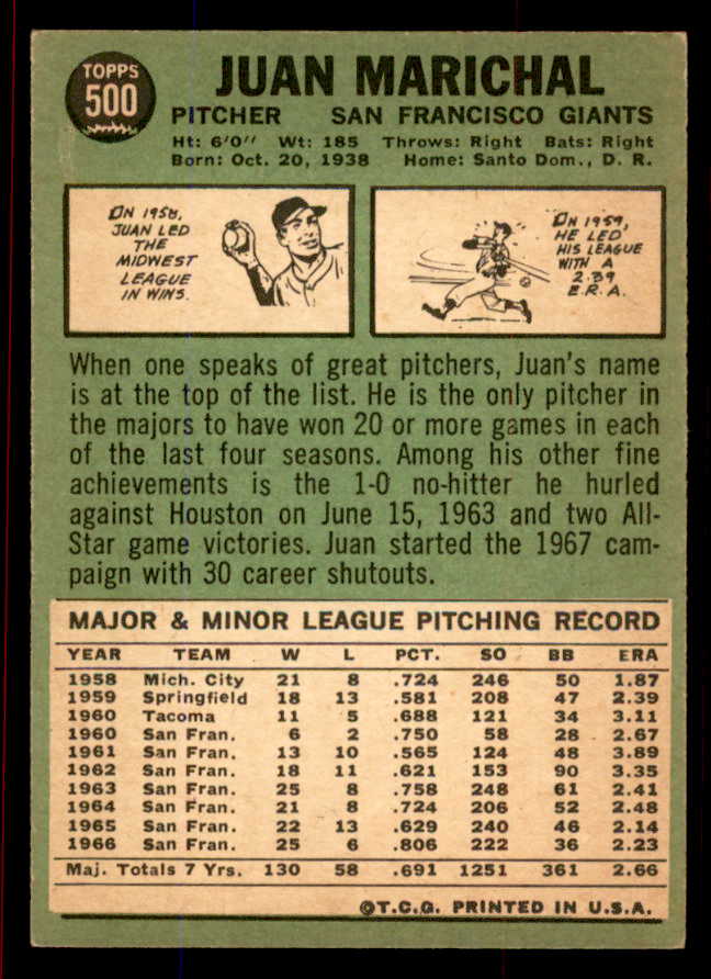 1967 Topps Baseball #500 Juan Marichal Giants EX-MT 545808