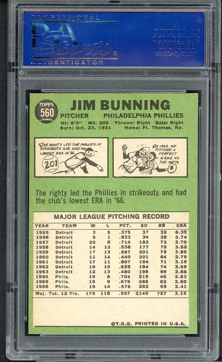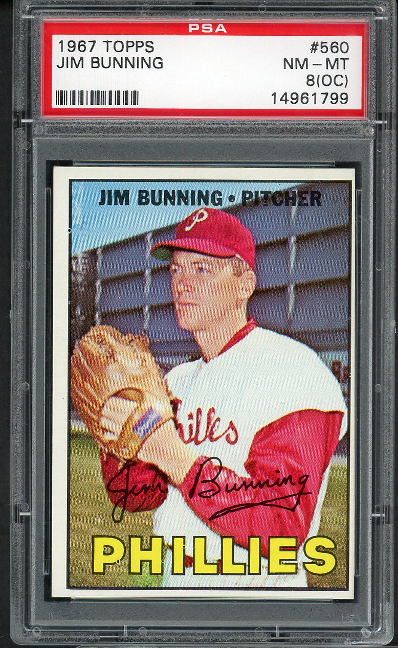 1967 Topps Baseball #560 Jim Bunning Phillies PSA 8 NM/MT oc 545287