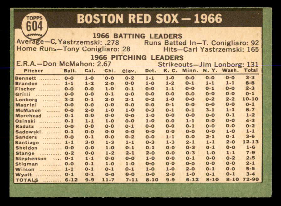 1967 Topps Baseball #604 Boston Red Sox Team EX 547854