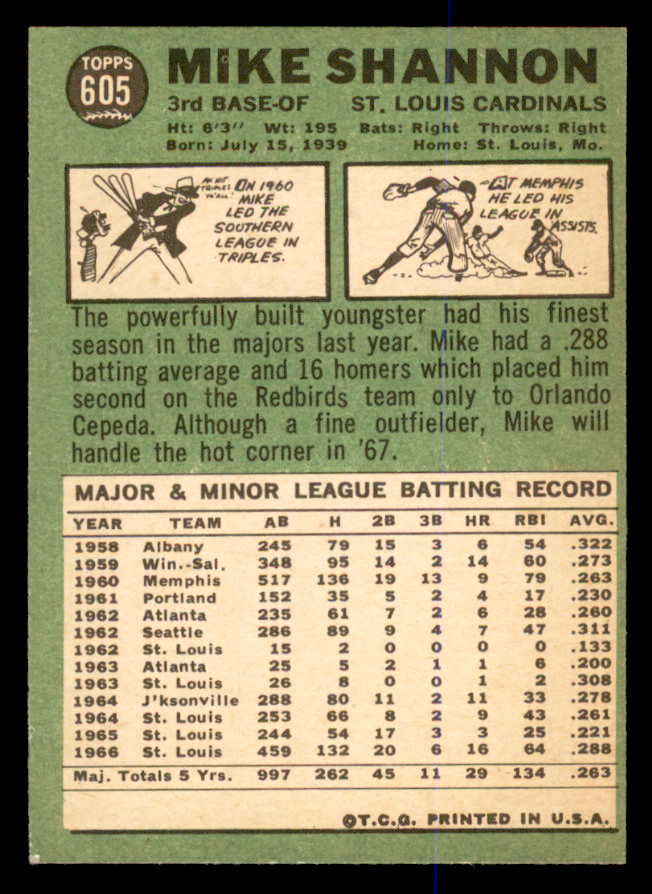 1967 Topps Baseball #605 Mike Shannon Cardinals EX-MT 547970