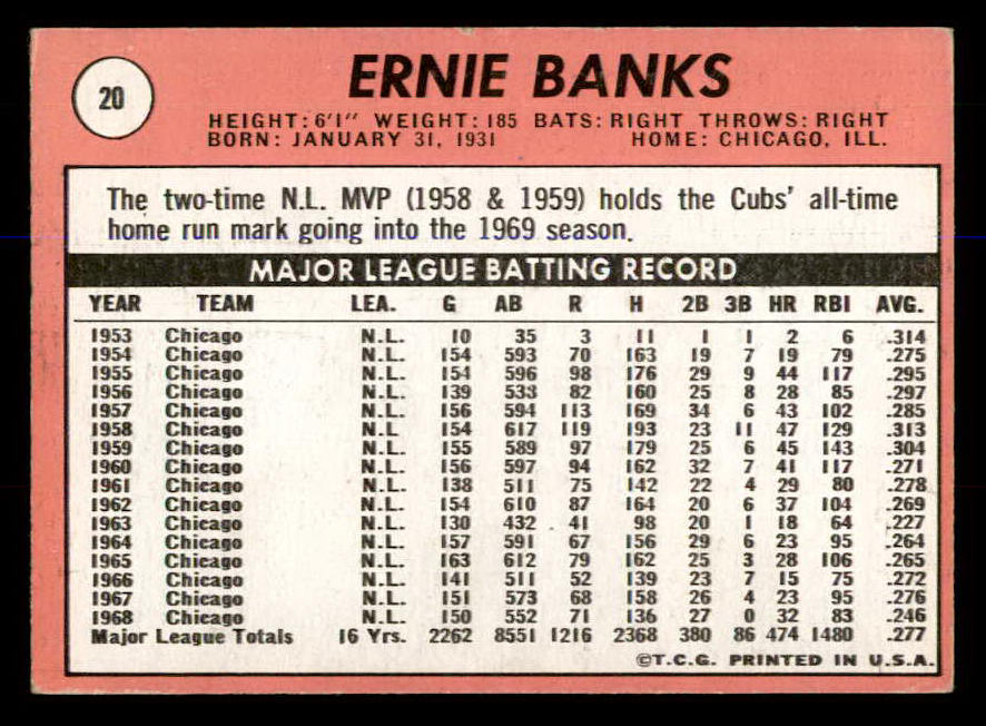 1969 Topps Baseball #020 Ernie Banks Cubs EX-MT 547962