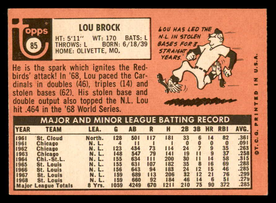1969 Topps Baseball #085 Lou Brock Cardinals EX+/EX-MT 546131