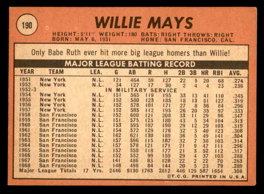 1969 Topps Baseball #190 Willie Mays Giants VG-EX 539279