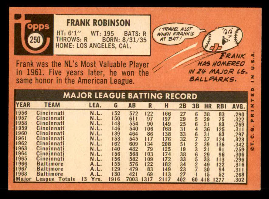 1969 Topps Baseball #250 Frank Robinson Orioles EX-MT 539921