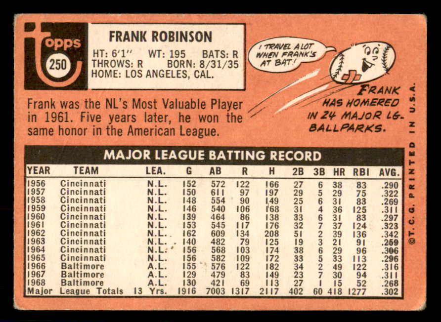 1969 Topps Baseball #250 Frank Robinson Orioles Fair 543216