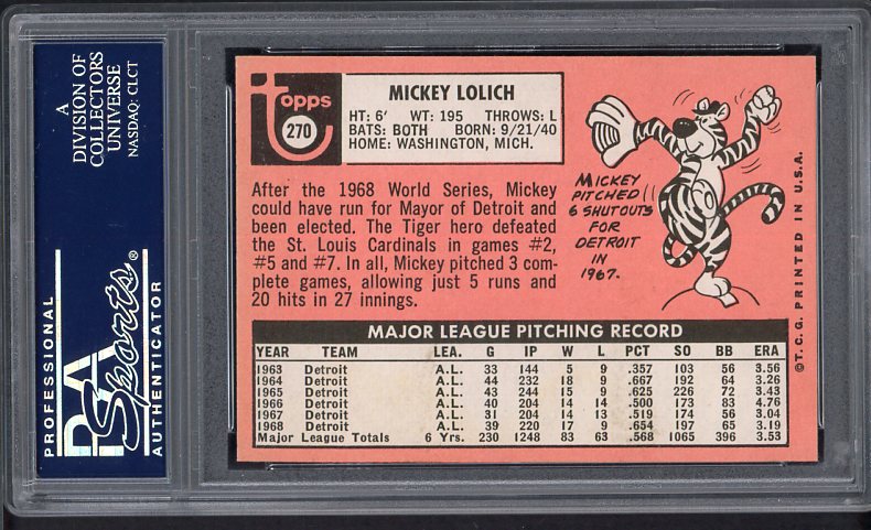 1969 Topps Baseball #270 Mickey Lolich Tigers PSA 7 NM 538363