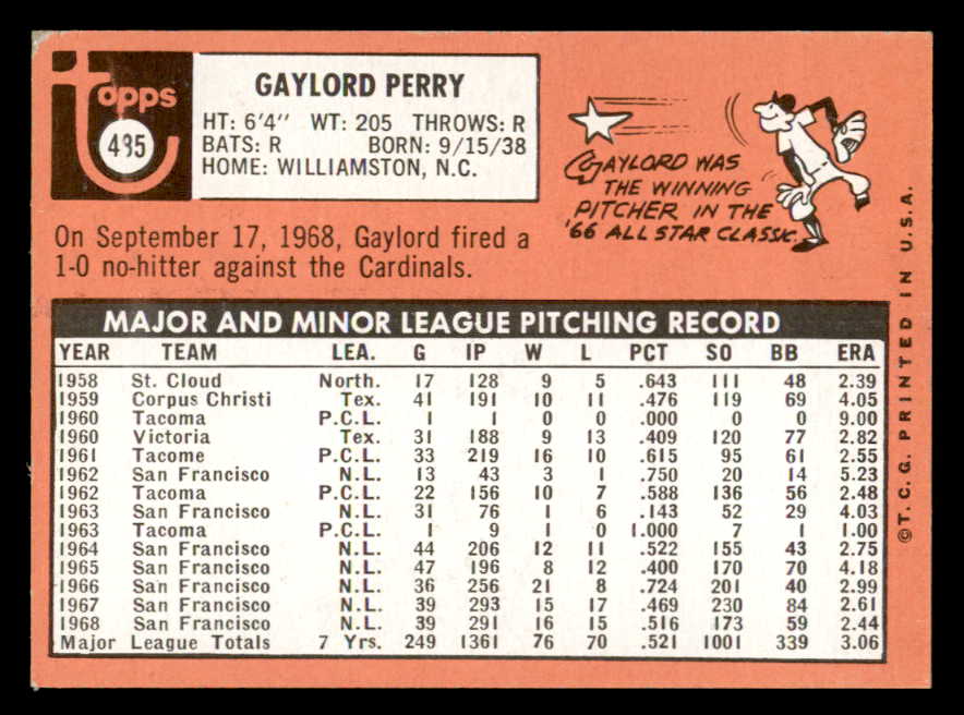 1969 Topps Baseball #485 Gaylord Perry Giants NR-MT 546160