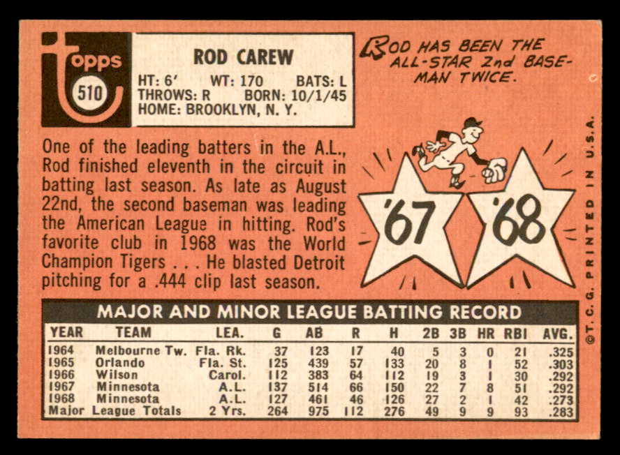 1969 Topps Baseball #510 Rod Carew Twins EX-MT 546134