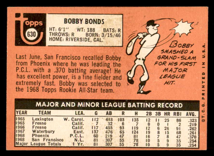 1969 Topps Baseball #630 Bobby Bonds Giants EX-MT 546685