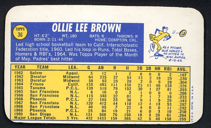 1970 Topps Baseball Supers #036 Ollie Brown Padres EX-MT 537150