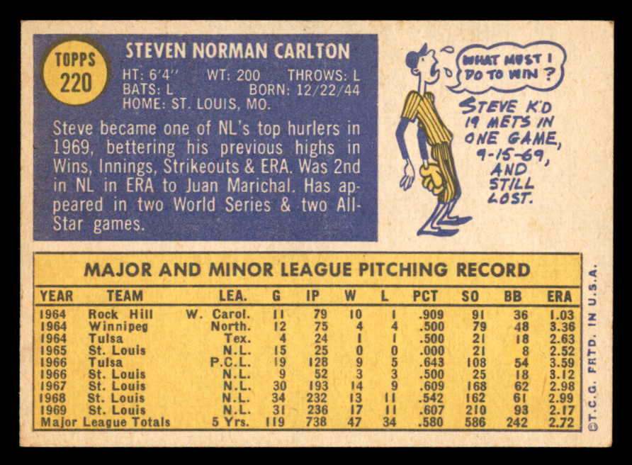 1970 Topps Baseball #220 Steve Carlton Cardinals EX-MT 546005
