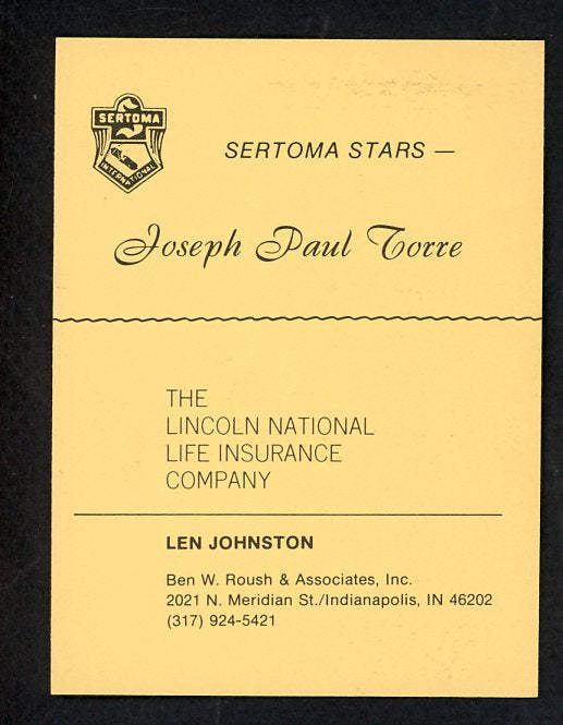 1977 Sertoma Stars Joe Torre Braves NR-MT 536683