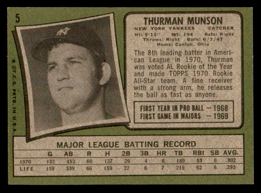1971 Topps Baseball #005 Thurman Munson Yankees VG-EX 539163