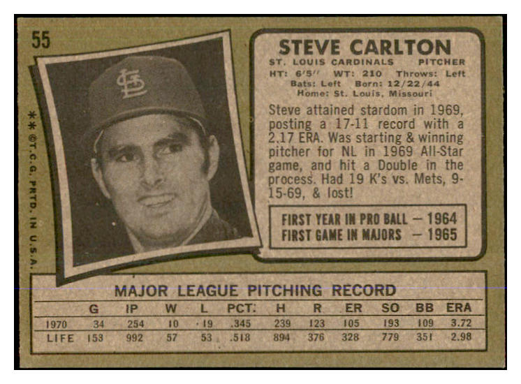 1971 Topps Baseball #055 Steve Carlton Cardinals EX-MT 537722