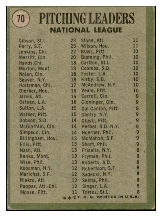 1971 Topps Baseball #070 N.L. Win Leaders Bob Gibson VG-EX 534276