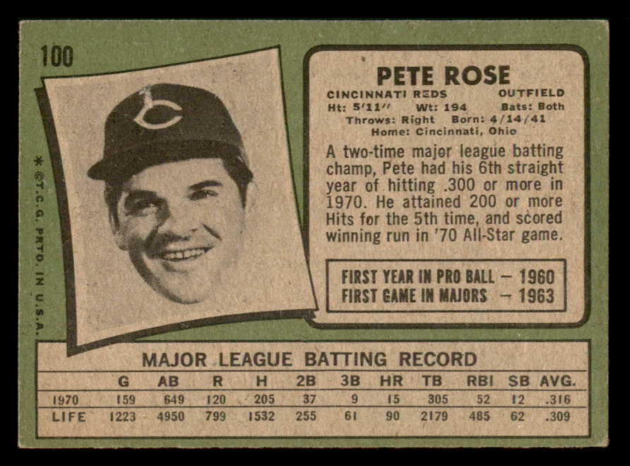 1971 Topps Baseball #100 Pete Rose Reds VG-EX 542413