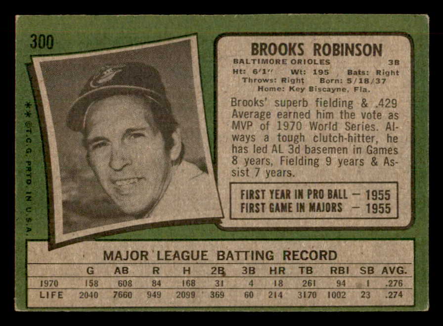 1971 Topps Baseball #300 Brooks Robinson Orioles EX 541659