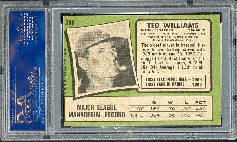 1971 Topps Baseball #380 Ted Williams Senators PSA 6 EX-MT 538236