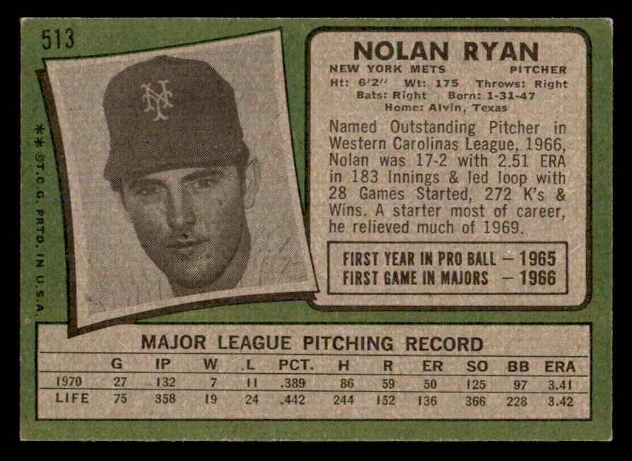 1971 Topps Baseball #513 Nolan Ryan Mets EX-MT 539157