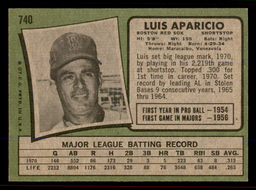 1971 Topps Baseball #740 Luis Aparicio Red Sox EX-MT/NR-MT 545942