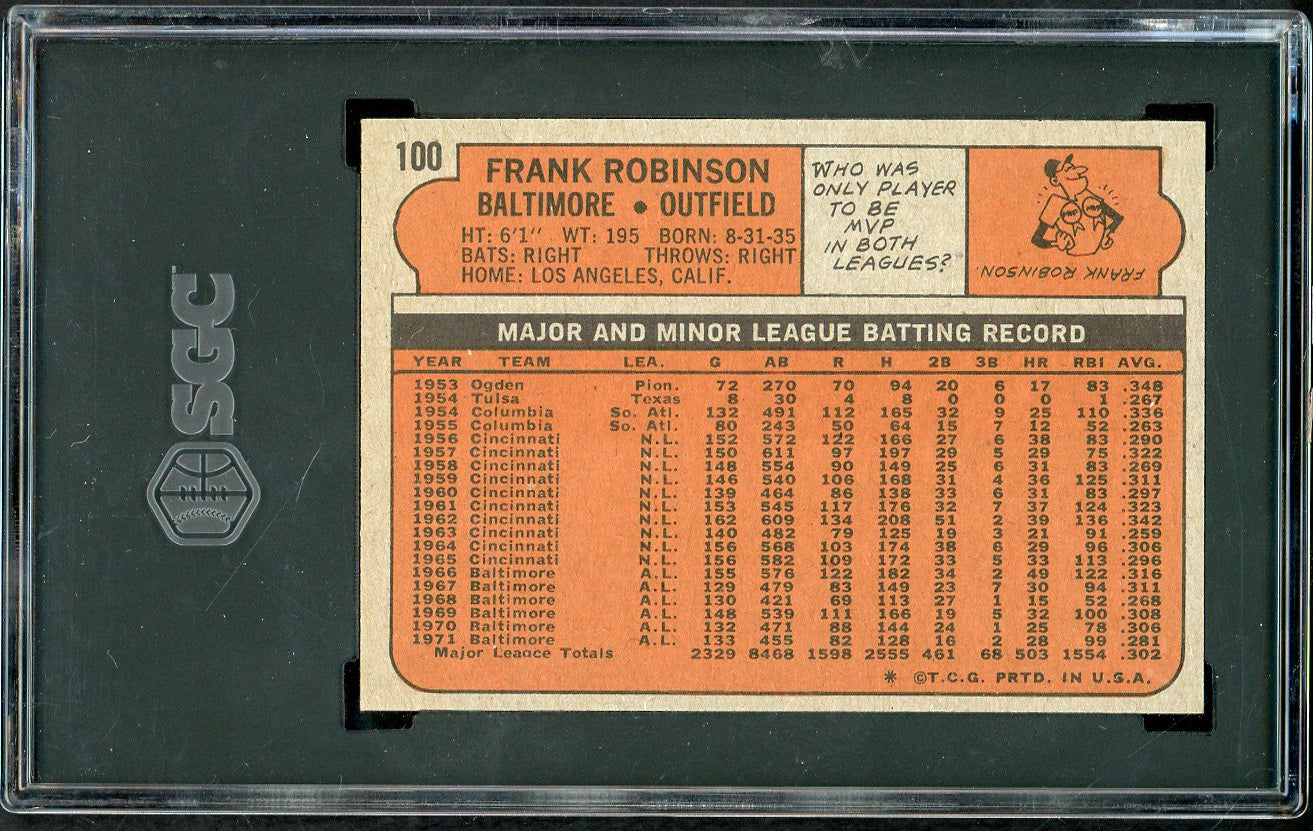 1972 Topps Baseball #100 Frank Robinson Orioles SGC 7.5 NM+ 544791
