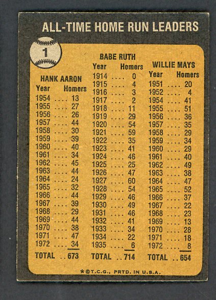 1973 Topps Baseball #001 Hank Aaron Babe Ruth Willie Mays GD-VG 542306