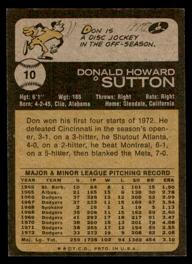 1973 Topps Baseball #010 Don Sutton Dodgers NR-MT 541541