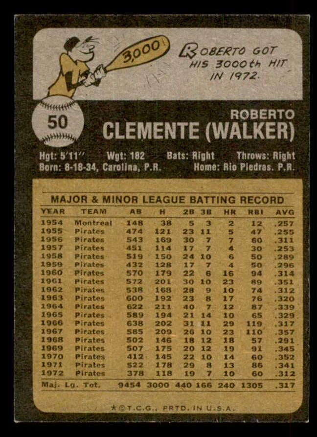 1973 Topps Baseball #050 Roberto Clemente Pirates NR-MT 541535