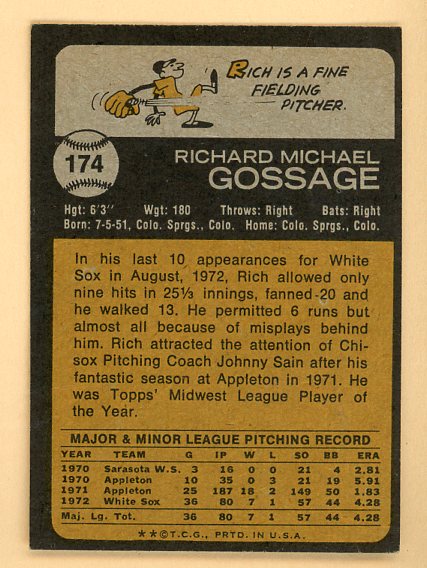 1973 Topps Baseball #174 Goose Gossage White Sox EX-MT 541530