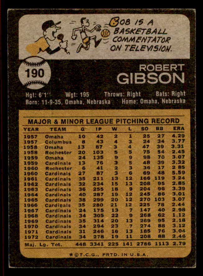 1973 Topps Baseball #190 Bob Gibson Cardinals VG-EX 542275