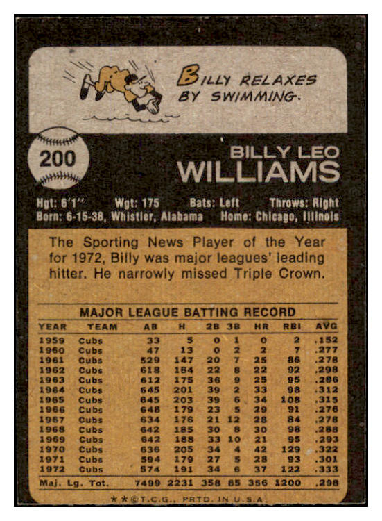 1973 Topps Baseball #200 Billy Williams Cubs VG-EX 527345