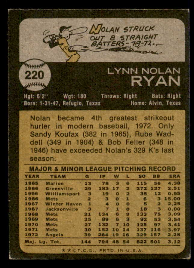 1973 Topps Baseball #220 Nolan Ryan Angels EX 542321