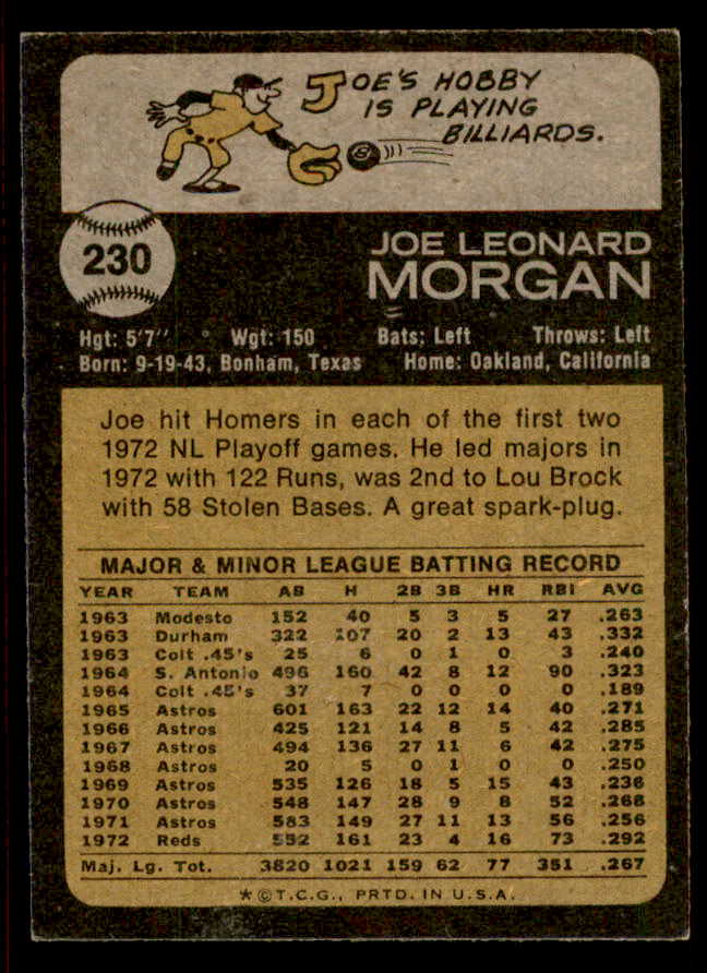 1973 Topps Baseball #230 Joe Morgan Reds EX-MT 542284