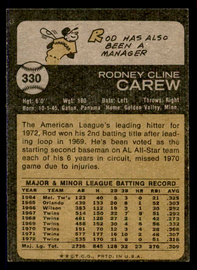 1973 Topps Baseball #330 Rod Carew Twins EX-MT 546055