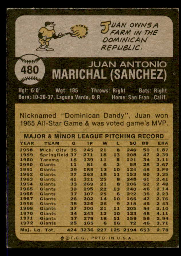 1973 Topps Baseball #480 Juan Marichal Giants EX 546041