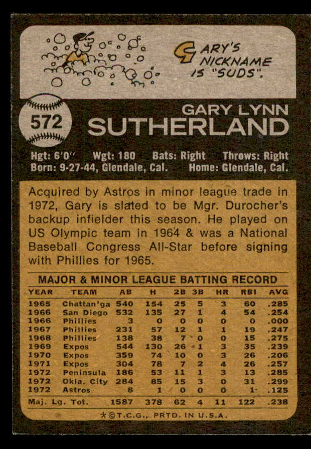 1973 Topps Baseball #572 Gary Sutherland Astros NR-MT 543189