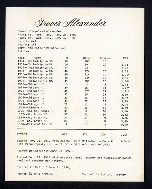 1974 Capital Publishing #071 Grover Alexander Phillies EX-MT 537638