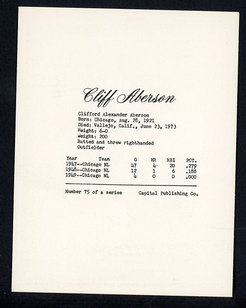 1974 Capital Publishing #075 Cliff Aberson Cubs NR-MT 537642