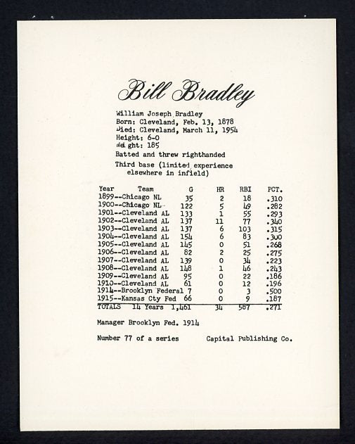 1974 Capital Publishing #077 Bill Bradley Indians NR-MT 537643