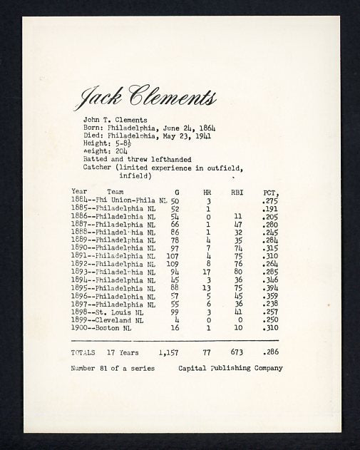 1974 Capital Publishing #081 Jack Clements Phillies NR-MT 537647